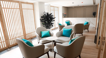 作為主城區(qū)唯一獨(dú)立獨(dú)棟的月子臻貴藝墅,寶山南路店增設(shè)陪護(hù)家屬社交休憩地、寶寶日光浴場(chǎng),水景陽光花園、空中陽光花園,采用園林景造設(shè)計(jì),